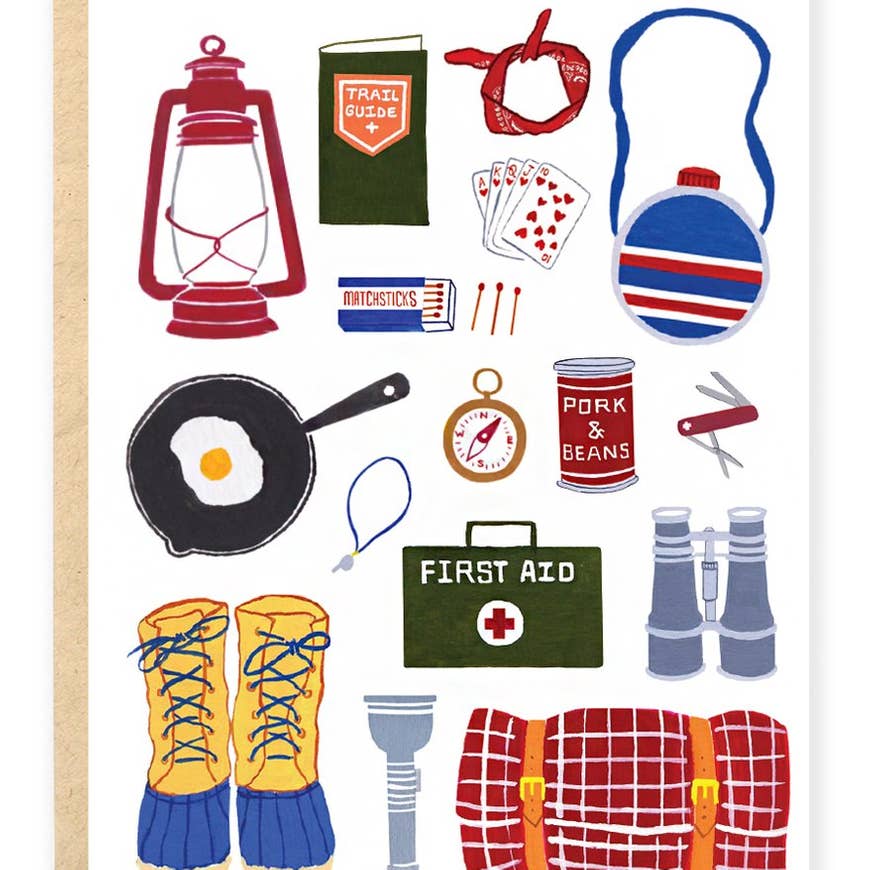 Lantern? Check. Duck boots? Check. Fun card? Check. Everything you need for a camping getaway!